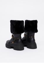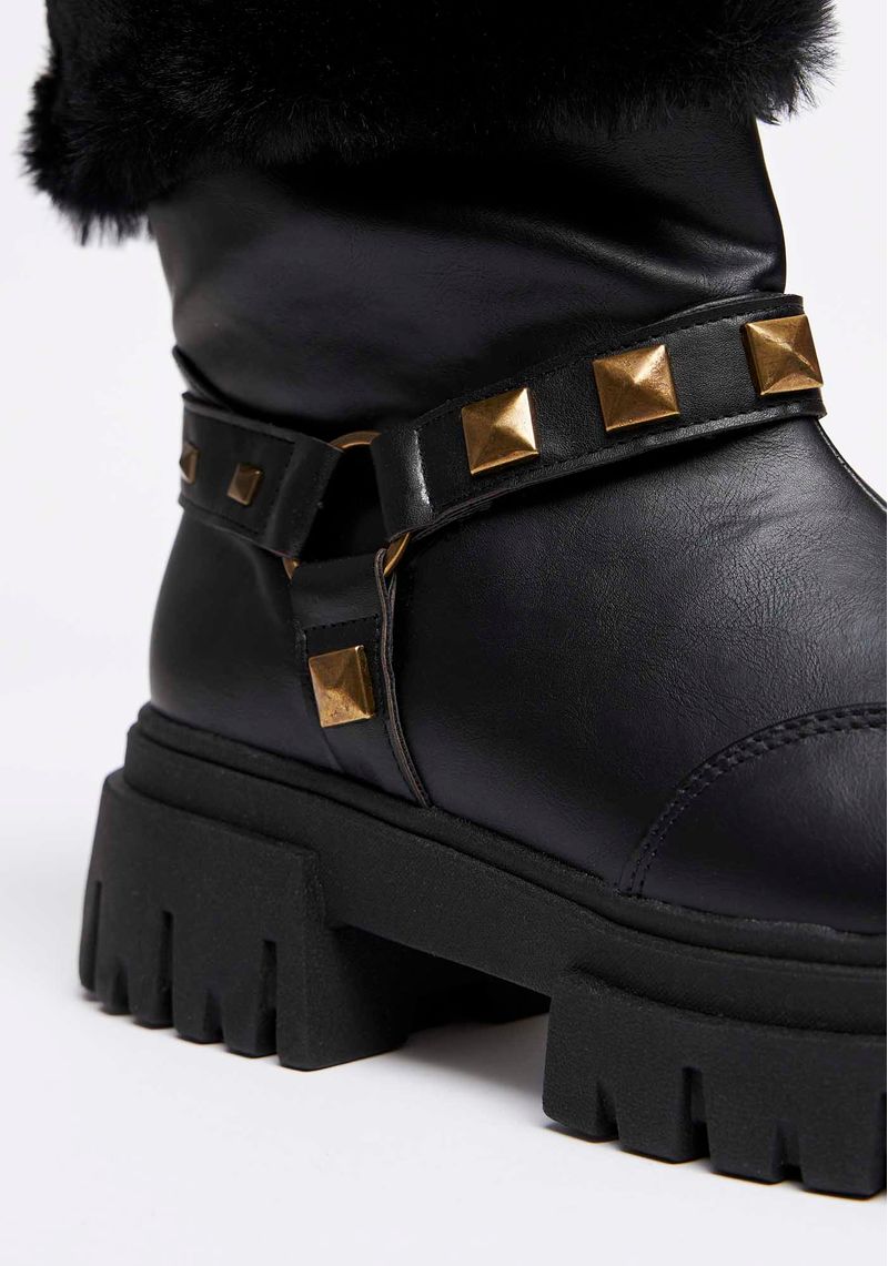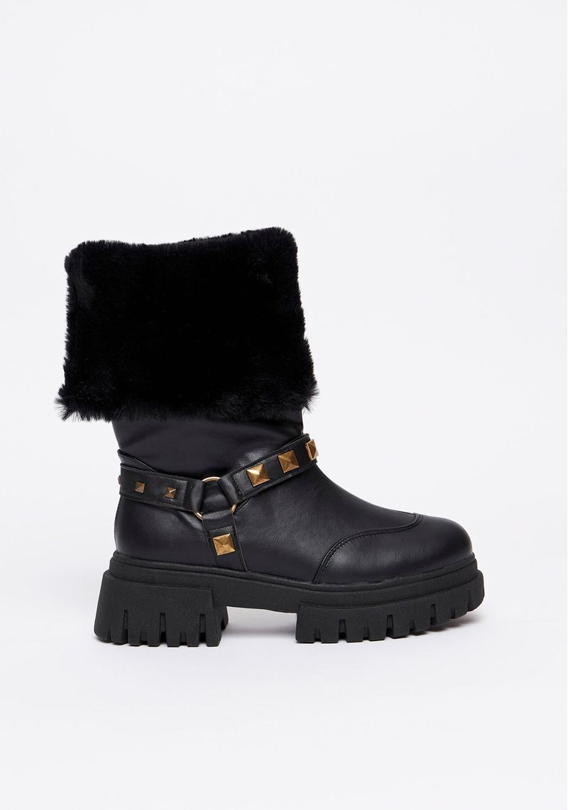 A bota com cano curto é uma peça must-have para um visual fashion. Com detalhes de pelos, tachas e zíper, ela combina estilo e conforto. Ideal para criar looks ousados e cheios de personalidade.