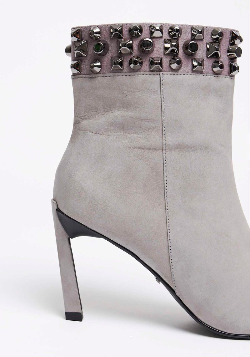 Confeccionada em couro, a bota apresenta bico e salto finos, além de possuir fecho em zíper na lateral. as aplicações metalizadas no cano fornece um toque glam ao calçado, que irá elevar suas produções. aposte!