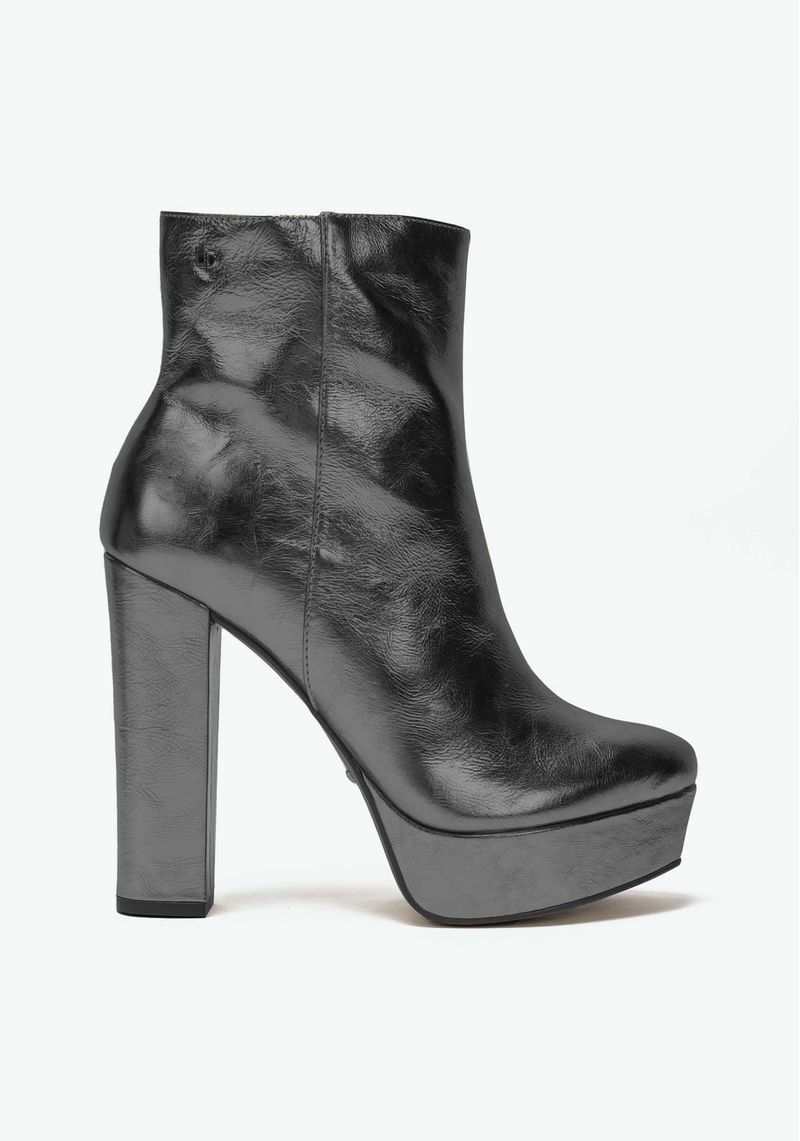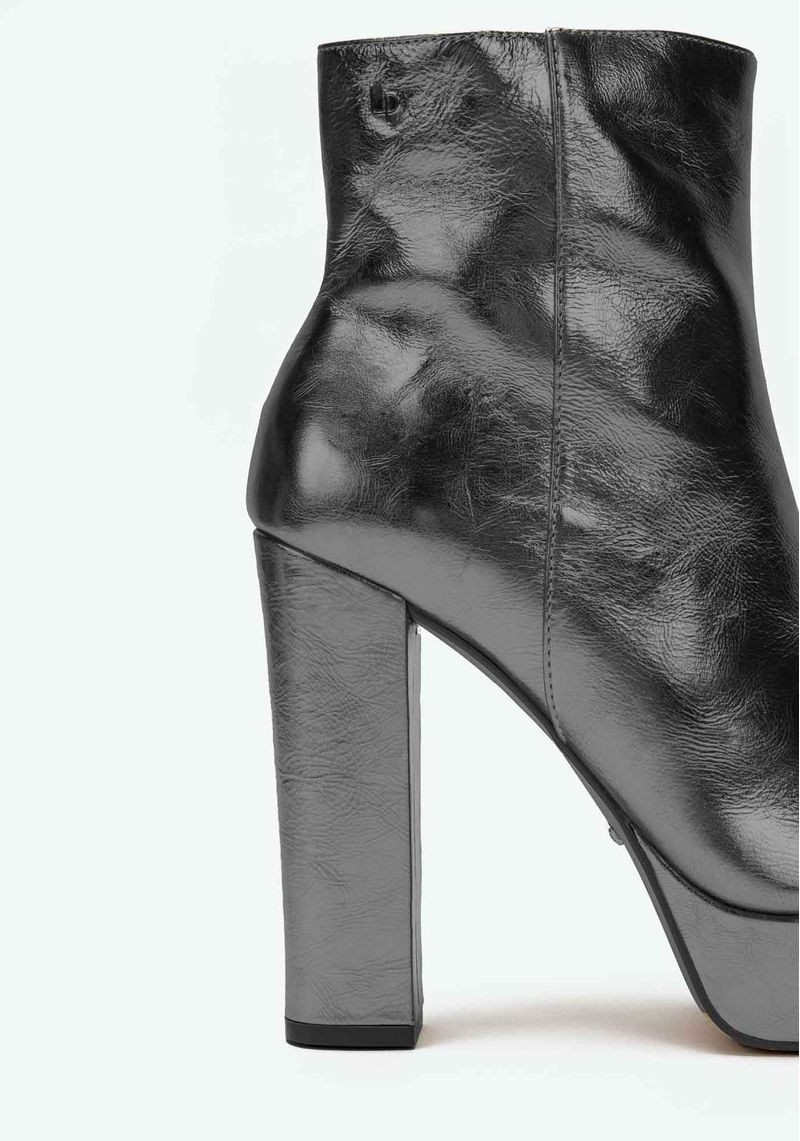A bota meia pata metalizada é um calçado incrível e versátil, adicionando um toque elegante aos looks. O salto alto e o bico fino complementam o visual, perfeito para usar em várias ocasiões.