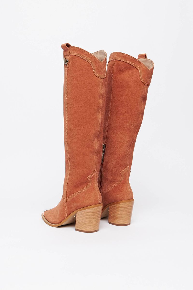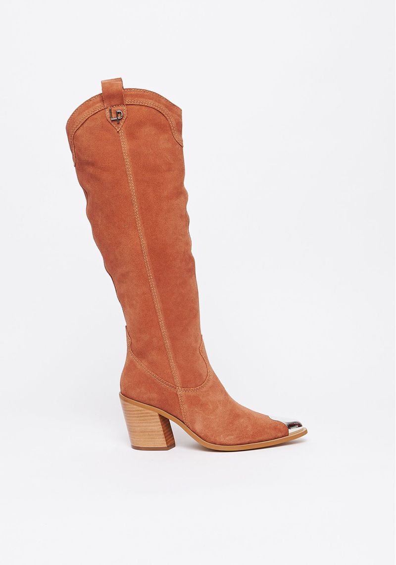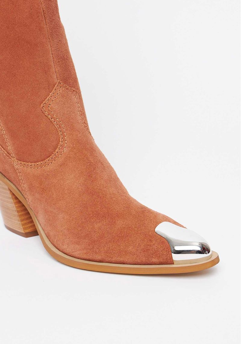 A bota western, trend do momento, possui cano longo, salto bloco e biqueira metalizada que a torna super elegante! oferece conforto e é a aposta certeira para os seus looks.