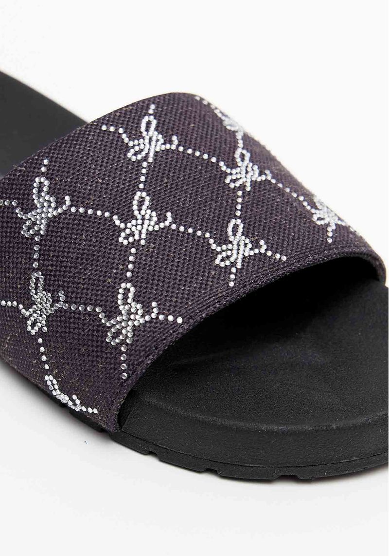 o chinelo slide apresenta monograma exclusivo com delicadas aplicações de brilhos para acrescentar sofisticação e originalidade ao seu dia a dia. Invista!