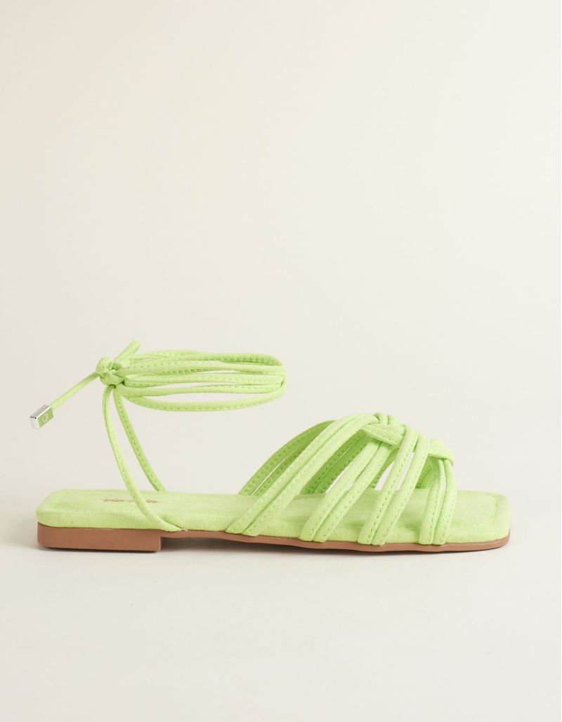 Rasteira Camurça Tiras Trançadas Amarração - Verde