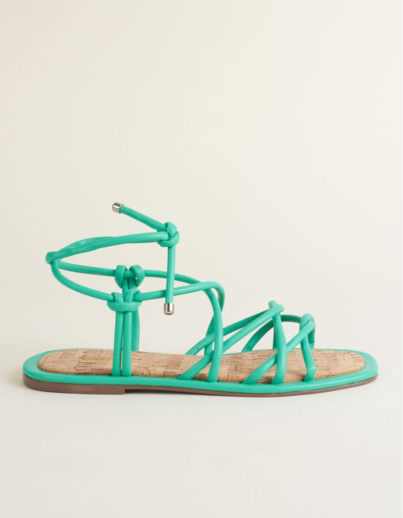 Essa rasteira é a cara do verão! Ela é toda trançada e de amarração com ponteiras de metal. Possui palmilha de cortiça que dá um efeito natural e casual, podendo ser usada em diversas ocasiões e é de material alternativo ao couro. Um destaque pra cor camel, que possui detalhes de tiras com listra preto e branco. Material: soft. Nas cores: preto, verde e camel.