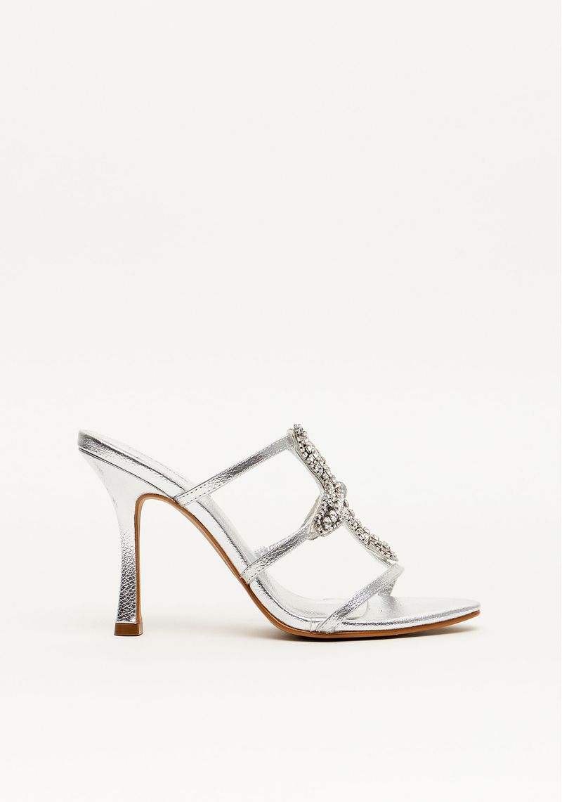 Sofisticação define esta sandália de salto alto, com tiras delicadas e aplique de estrela brilhante.