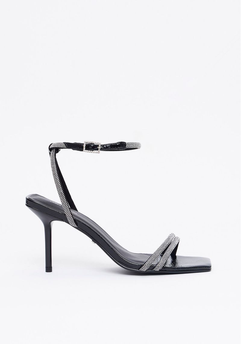 A sandália feminina feita em couro é perfeita para ocasiões especiais. Suas delicadas tiras com strass adicionam um brilho sofisticado ao visual, enquanto o salto fino e a frente quadrada conferem um toque contemporâneo. Invista!