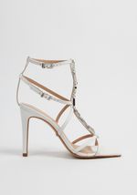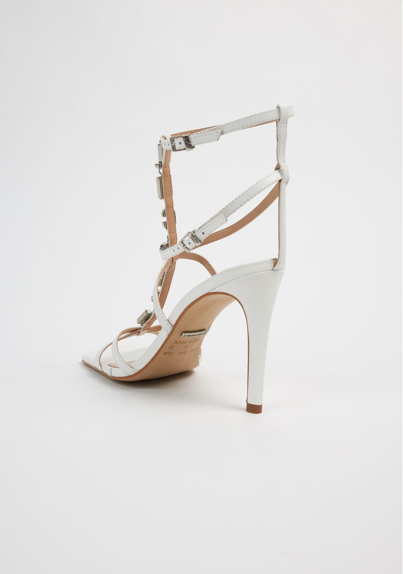 A sandália de bico quadrado possui tiras cheias de elegância, trazendo um aspecto totalmente único para o seu visual. Um calçado com tiras cruzadas e tira central com aplicação de metal e assinatura da marca. as fivelas finalizam a peça, oferecendo mais charme e perfeito para valorizar a postura e silhueta. Aposte nessa tendência.