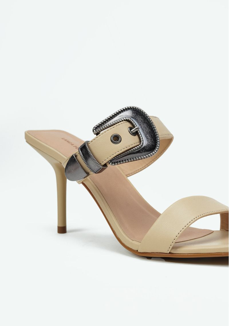 A sandália apresenta salto fino, bico quadrado, tiras largas sobre os dedos e no peito do pé, com fivelasde metal. Inspirada na tendência western, é um modelo versátil e confortável, combinando com diversasocasiões!