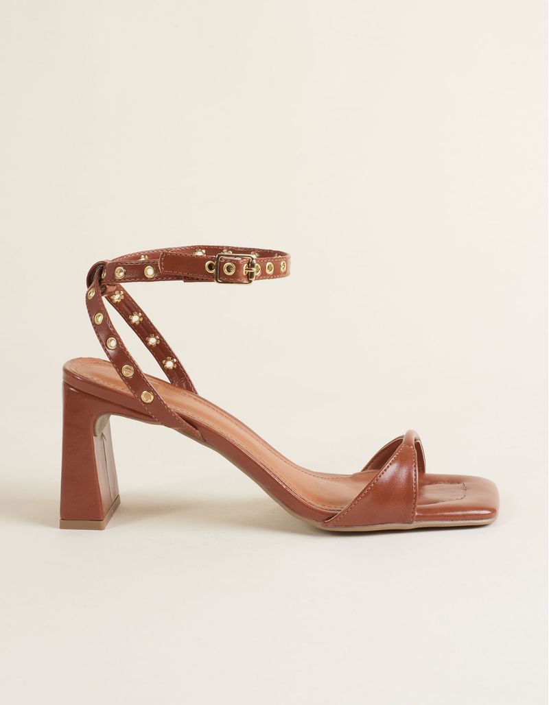 Essa sandália de salto médio tem um design clean com tira única e detalhe de dobra. A tira de fechamento com aplicação de ilhós e fivela metálica é o destaque. A palmilha com peso delicado no mesmo material e a sola natural tornam-se uma peça indispensável. Medida Salto aprox.8cm