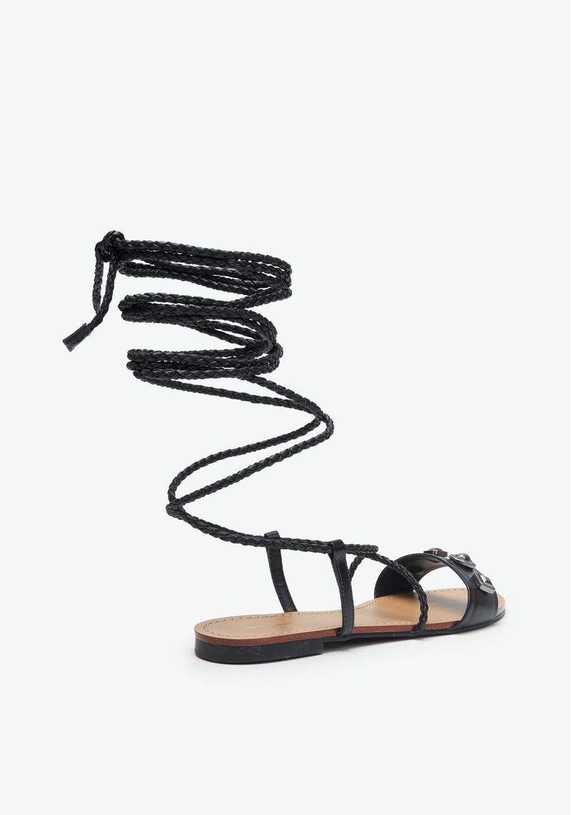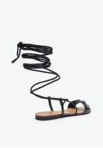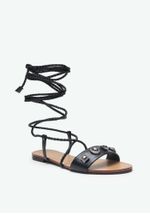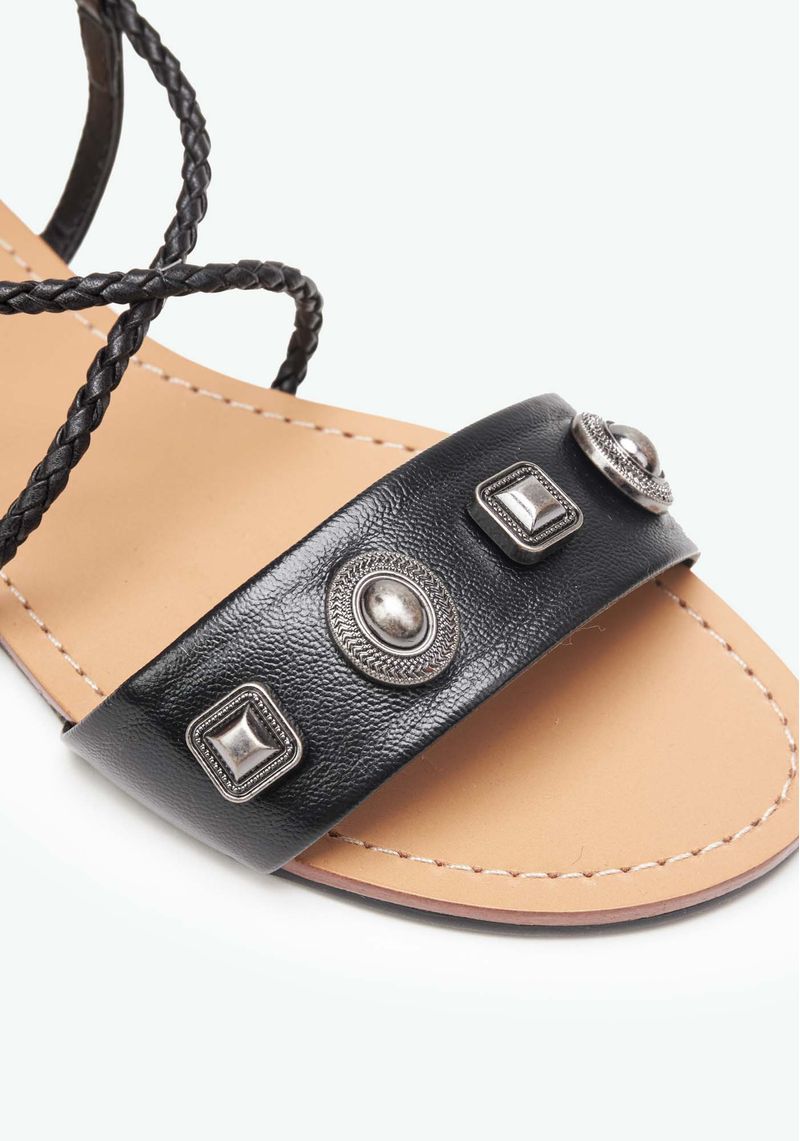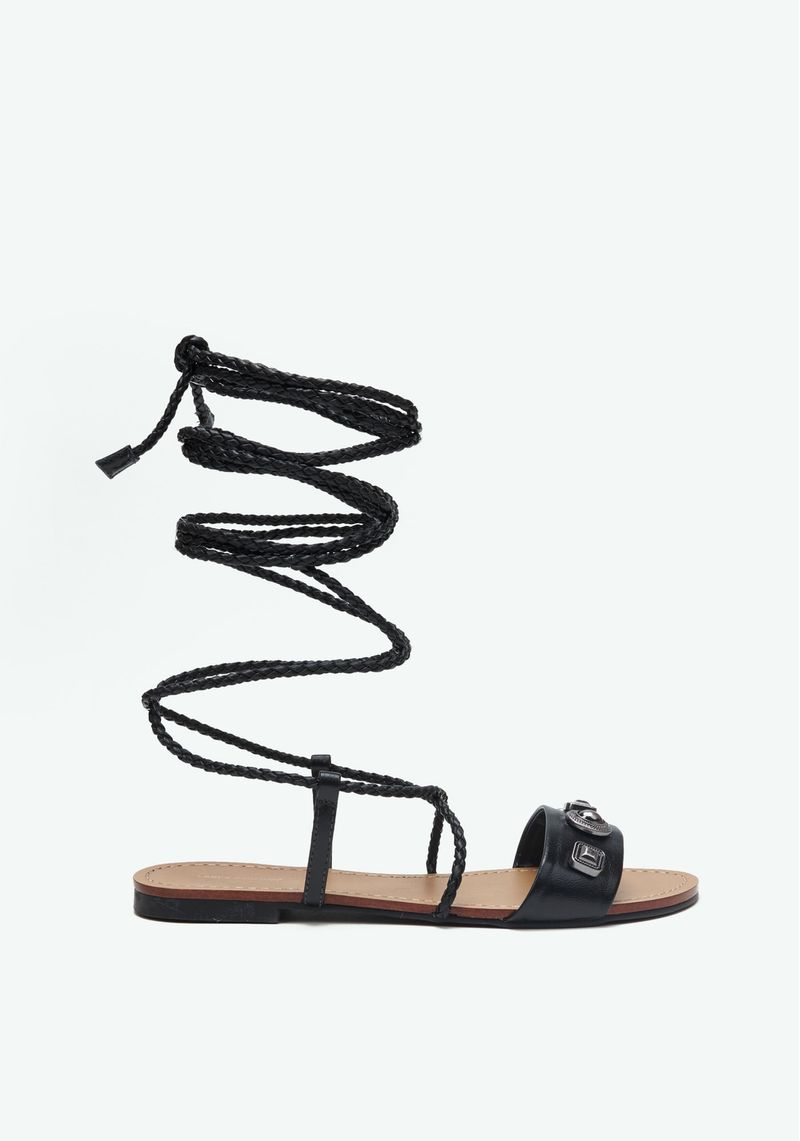 Sandália Rasteira Em Couro Com Amarração E Rebites