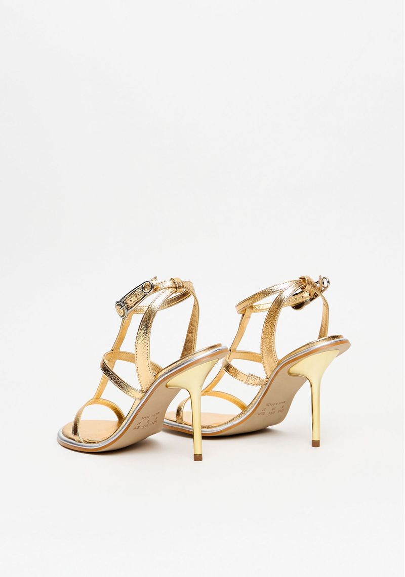 perfeita para compor seus looks, a sandália de salto alto se destaca pelos detalhes exclusivos que inspiram glamour. As delicadas tiras finas conferem o toque final de sofisticação!