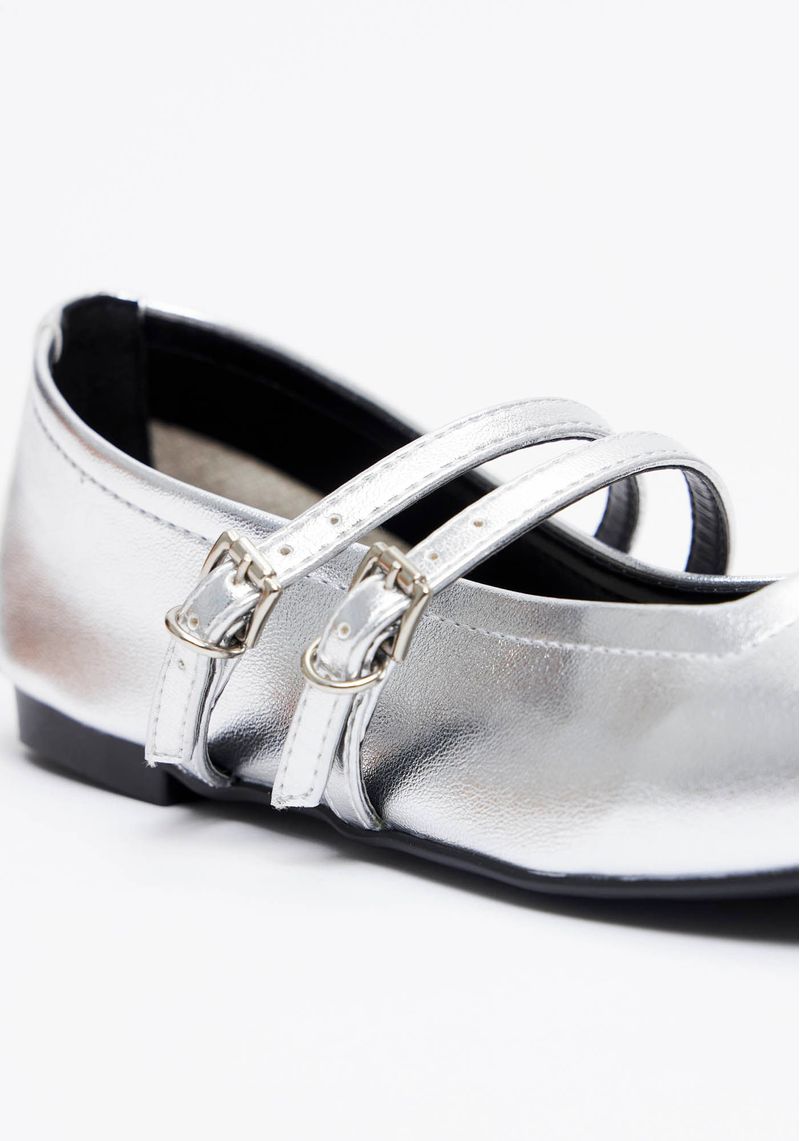 a sapatilha é o item indispensável no closet das fashionistas. Perfeito para um look aliado ao estilo balletcore, possui tiras, fivelas e acabamento metalizado que garantem o toque glam.