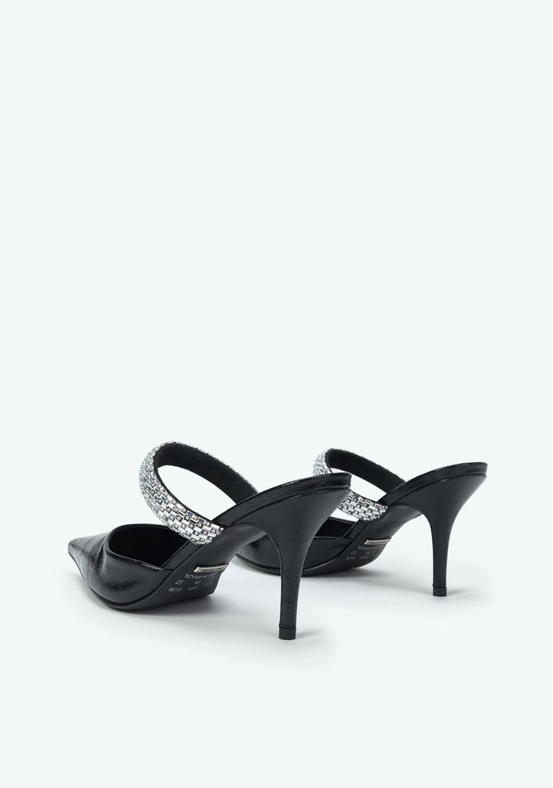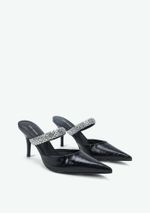 O scarpin com bico fino em salto médio é um clássico super chic! a tira no peito do pé personalizada em strass dá um toque glamouroso ao calçado. Super elegante, é uma aposta que alonga as pernas e transforma sua produção! aposte.
