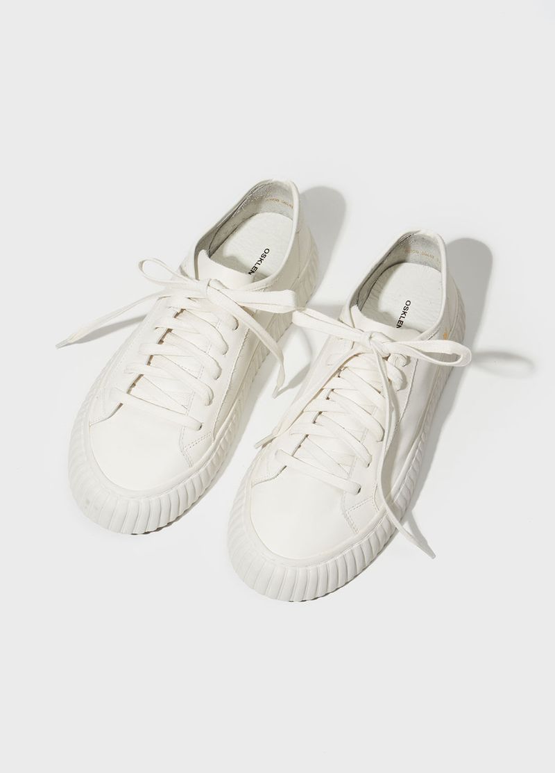 Tênis vulcanizado em couro bovino. modelo de amarração com cadarço de algodão. forro e palmilha em couro bovino. solado flatform de borracha costurado ao cabedal com design exclusivo osklen, produzido com no mínimo 10% de material reciclado. produto re-d